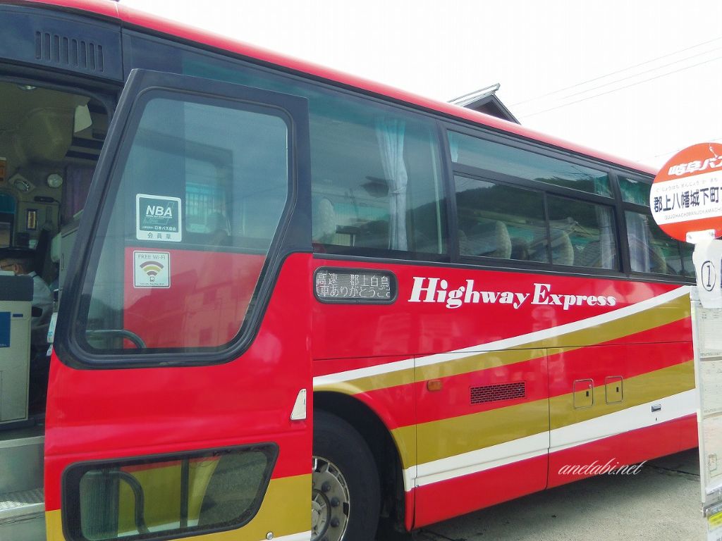 乗車時間は東海北陸自動車道経由で約1時間。下車バス停は終点の八幡駅(郡上八幡駅)ではなくて途中のバス停です。
