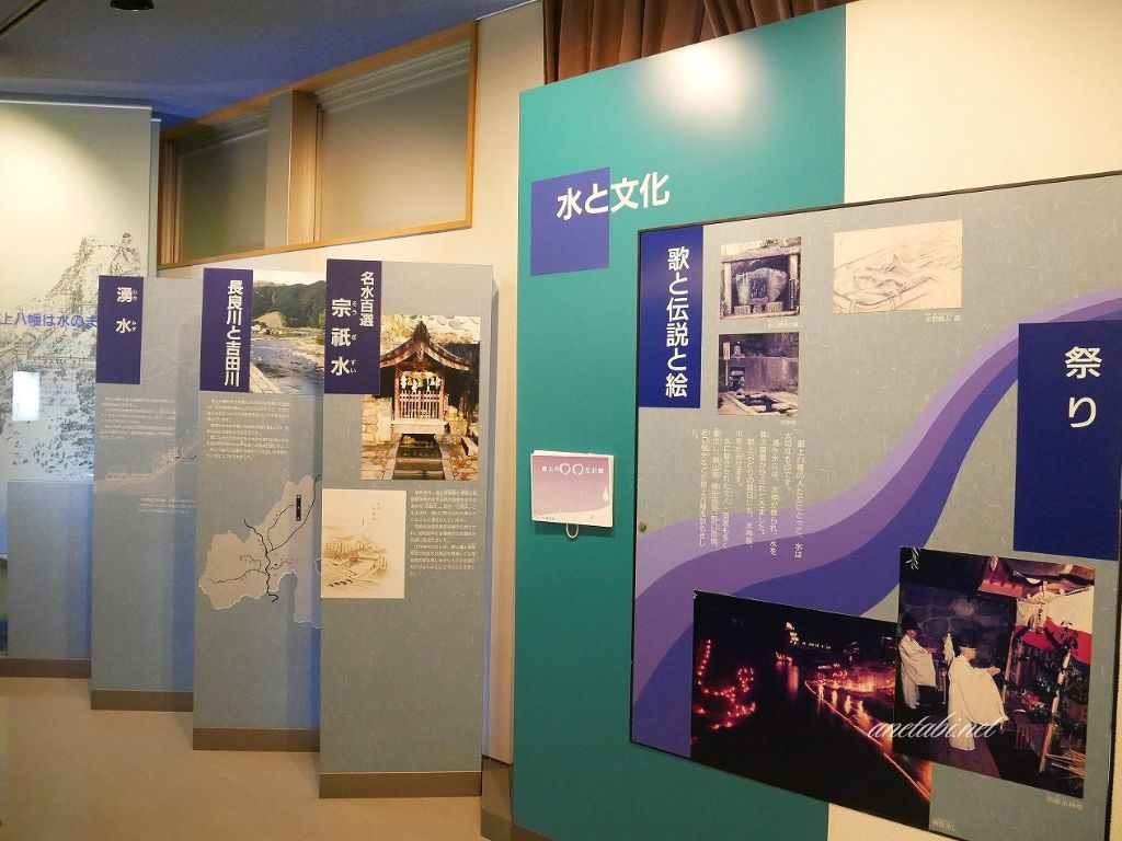 建物内の展示コーナーでは郡上八幡の水・歴史・技についてのパネル紹介が。