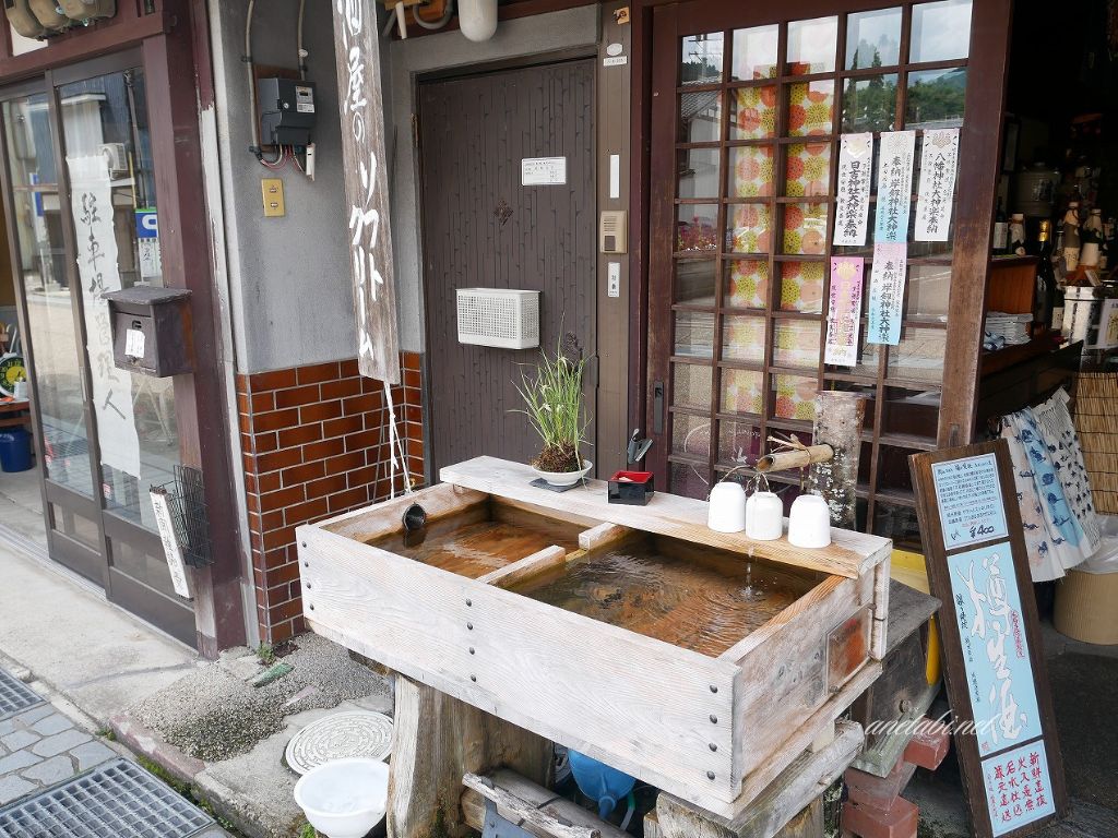 屋根に飾られた「白雪」の看板といい、店舗前に設置された水舟(みずふな )といい、なんだか惹き込まれる。
