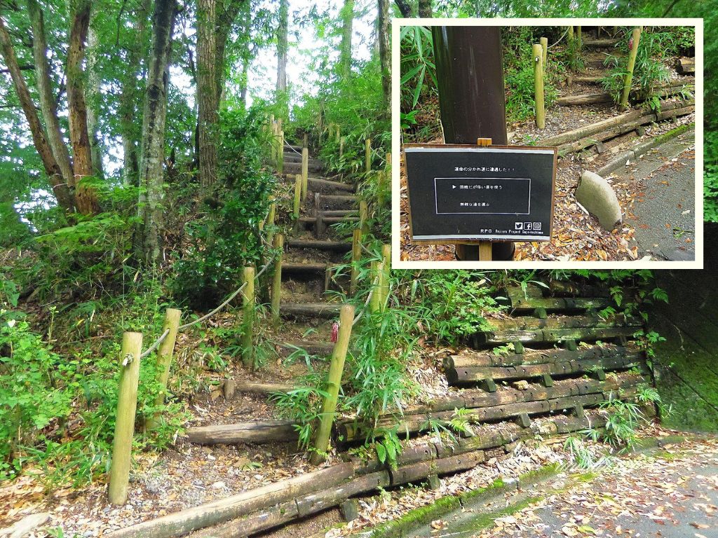 そして九十九折りの坂道を登り続けると、途中にはところどころRPGゲーム風な看板がありました。